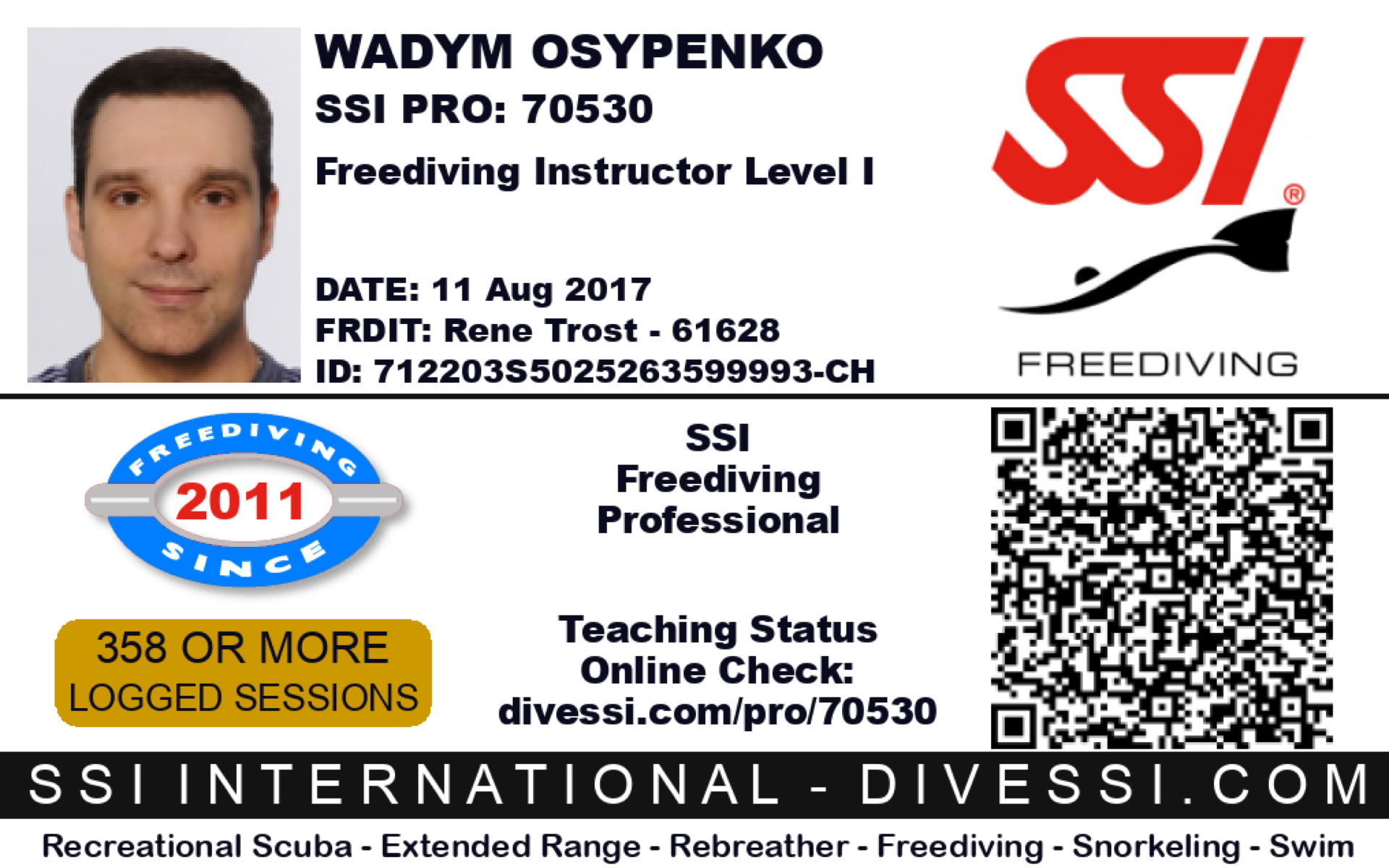 Scuba & Freediving instructor SSI
